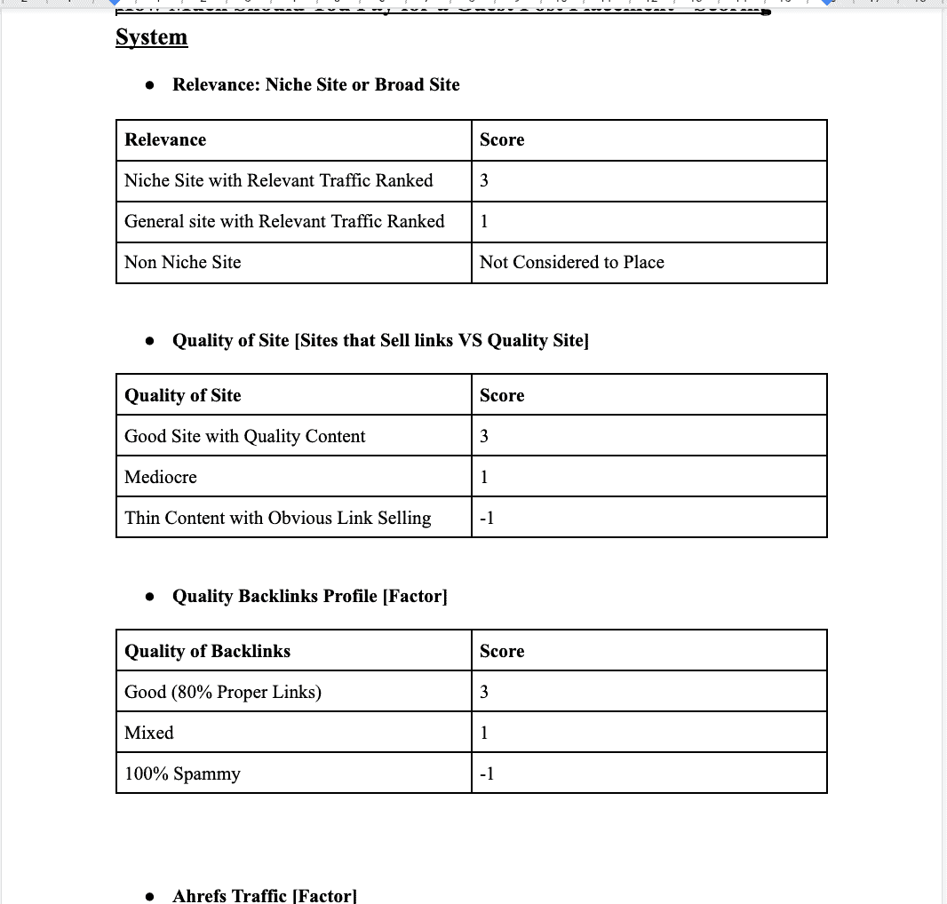 Link Building Pricing Model