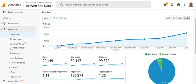 Traffic Growth on Google Analytics for MarcusNeo.Com