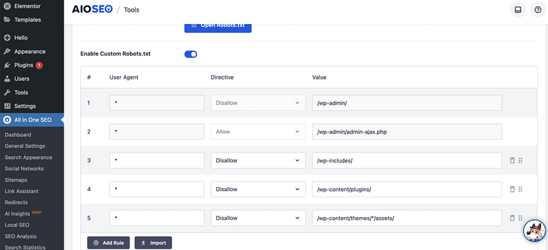 Actions taken: There was no robots.txt found in my cPanel. Basically, All in One SEO is ‘serving it dynamically’, and I updated robots.txt via All in One SEO → Tools → Robots.txt Editor.