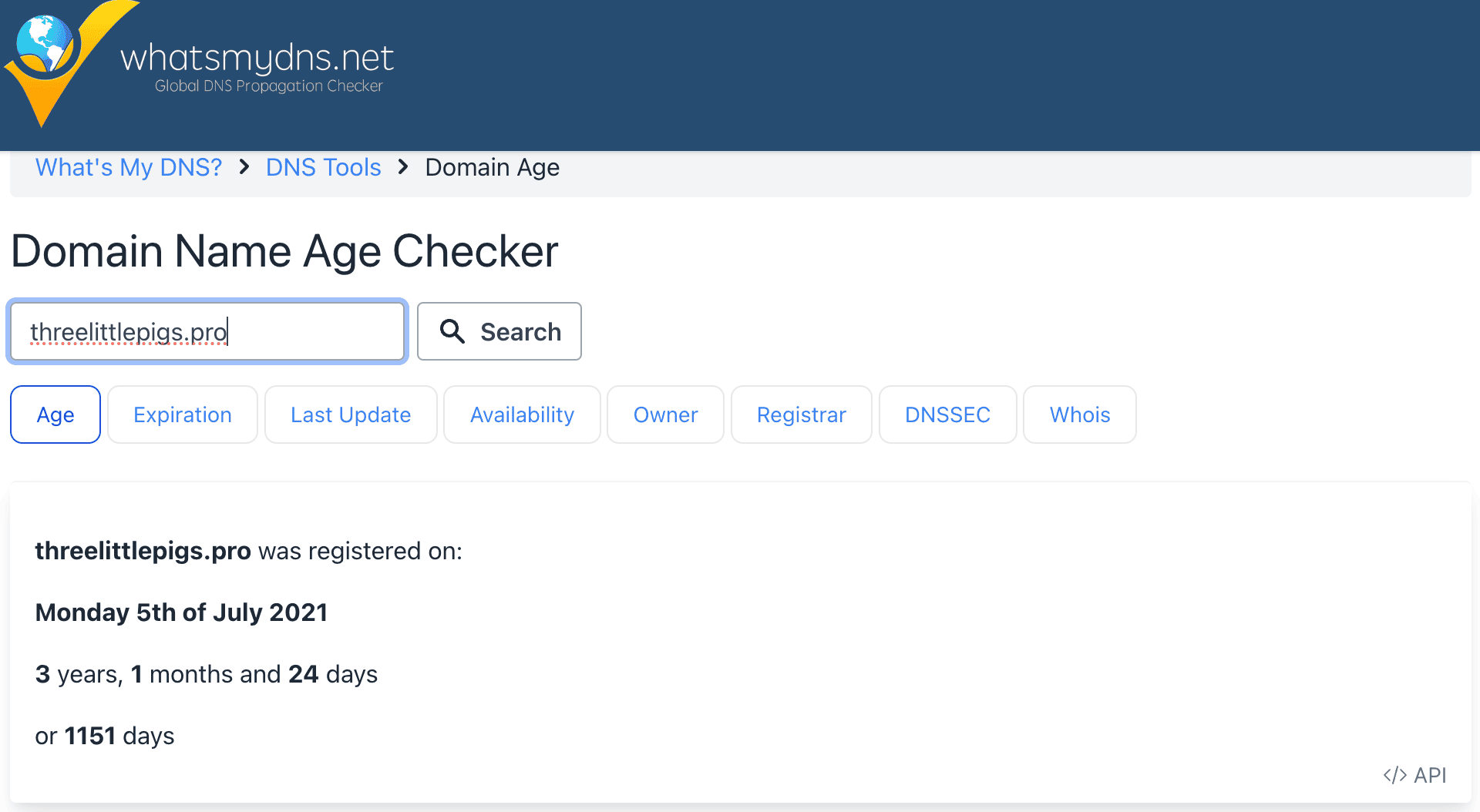 Threelittlepigs.Pro Domain Age